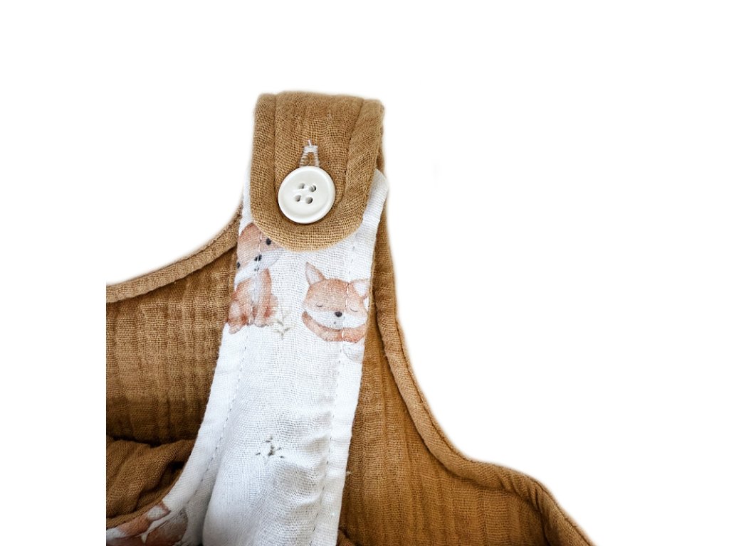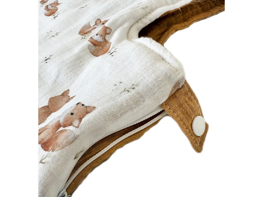 Celoroční spací pytel mušelínový - Hnědý s liškou