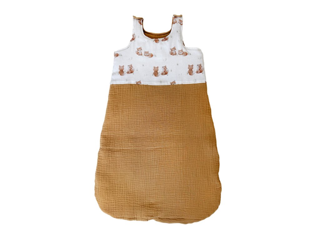 ✔️ Lehký a prodyšný mušelín z 100% bavlny – přírodní bavlna je mimořádně jemná, šetrná a příjemná na dotek; zároveň udržuje celoročně optimální teplotu a brání přehřátí; kombinace vzoru lišek s krásnou karamelovou barvou dodává pytlíku veselý šmrnc