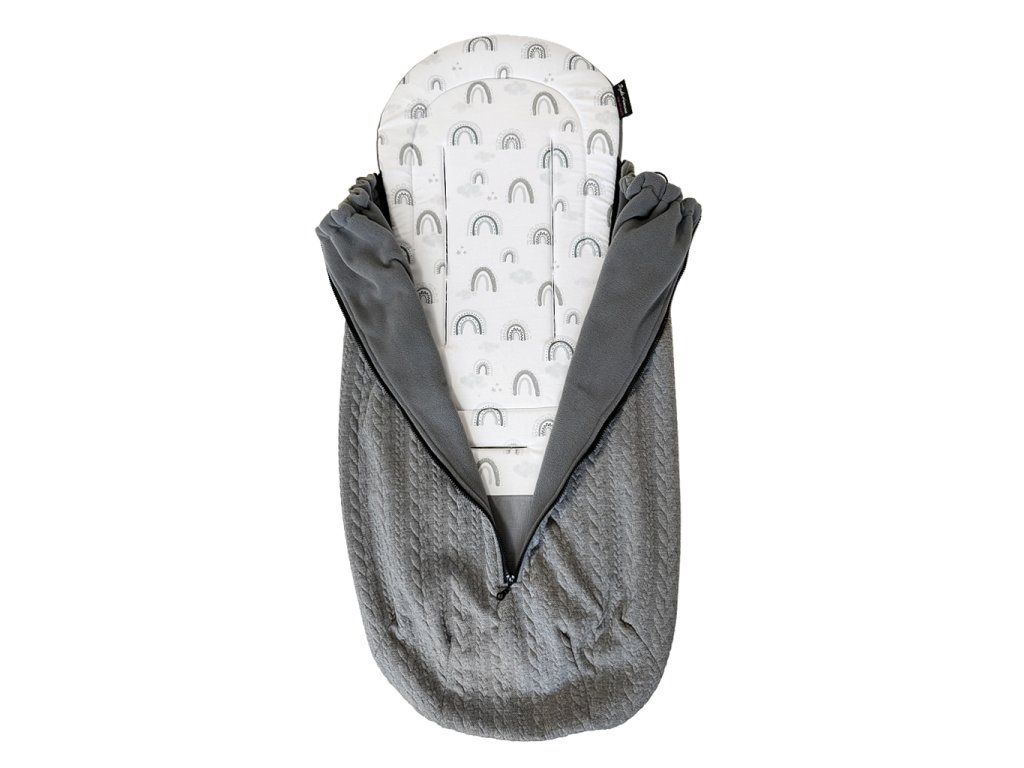 ✔️ Praktické a promyšlené zpracování – podložku do kočárku můžete používat samostatně nebo k ní připojit nepadací copánkovou deku díky postranním zipům. Spodní část podložky je vybavena omyvatelnou, nepromokavou vrstvou u nožiček. Šedá barva copánkového úpletu je univerzální a hodí se do kočárku každé barvy, stejně jako motiv duhy, který bude vhodný jak pro holčičku, tak pro chlapečka.